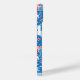 Coque motif de Noël bleu rouge et blanc, avec de mignons oiseaux chantant et des cerfs qui dansent sur des cadeaux dans la neige par Sarah Trett.