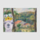 A surreal compilation for fine art lovers and llama lovers alike. The background of this wonderful tissue paper is Pierre-Auguste Renoir's Environs of Briey painting with the addition of a sweet llama with sunflower crown watercolor illustration in the forefront.
