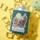 Farbenfrohe Weihnachtlandschaft, auf der der Weihnachtsmann mit seinem Rentierschlitten, die Geschenke verteilt. Rudi "the rednose rendeer" ist mit dabei! Text im Banner: "Frohe Weihnachten".
