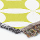 A repeat circular quarters cut out style patterned throw in lime green and white, by Sarah Trett. Would look great in a bedroom, lounge room.