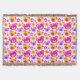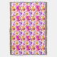A repeat teddy bear faces and flowers bold graphic patterned throw in bright pink, purple, yellow and white, original pattern design by Sarah Trett. Would look great in a girls bedroom or in a playroom.