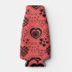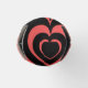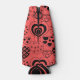 This bottle cooler has a Valentine’s design of repeating hearts with different graphics inside on a field of red.