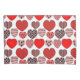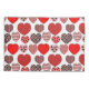 This pillowcase has a Valentine’s design of repeating hearts with different graphics inside on a field of white.