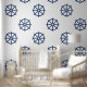 Enhance your space with our Geometric Shape Nautical Coastal Navy Blue Ship Wheel Wallpaper. Featuring a stylish pattern of anchors and geometric shapes in a sophisticated navy blue palette, this wallpaper brings a modern coastal vibe to any room. Perfect for adding a touch of nautical charm to your living room, bedroom, office, or nursery, it combines contemporary design with timeless maritime elements.