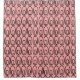 This shower curtain has a mid-century modern design of a small oval inside a bigger oval on a field of salmon.