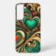 Repetitive Hearts Swirls Pattern Emerald Gold Samsung Galaxy S22+ Case