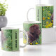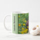 This mug features a close-up photograph of a chocolate Labrador Retriever lying in lush green grass and California poppies as a placeholder photo. Keep this photo or replace it with one of your favourite horizontal photo. Personalize or keep the the text on both sides of the handle.