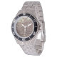 Has heft and feel of expensive stainless steel quartz watches. Good band with safety catch. I removed links, which is easy because engraved arrows show direction to push the linking pins. As always by this seller, the image (a railroad logo) is a perfect reproduction of my emailed image, and is precisely spaced and aligned.