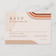 Modern boho wedding RSVP card with arch shapes in terracotta, rust, burnt orange, and dark green, emerald tones.
