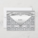 Réponse à une soirée élégante d'anniversaire de mariage de 25 ans en argent avec une bordure de diamants argentés. Cette belle carte de réponse pour une soirée d'anniversaire de mariage de 25 ans en argent fonctionne bien comme une invitation à une fête d'anniversaire, une soirée cocktail, une fête de retraite, et toute autre occasion spéciale. Personnalisez avec votre choix de style de police et de couleur de police. Il s'agit d'un design imprimé plat sans vrais bijoux, rubans ou pièces ajoutées.