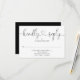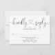 Une simple et élégante carte de réponse avec un cœur en script noir et blanc, avec vos informations dans une typographie chic. Conçue par Thisisnotme©