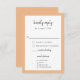 "répondre aimablement" sur une carte de réponse de mariage couleur pêche en écriture élégante avec choix de repas