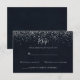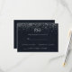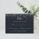 Cette réponse calligraphique avec confettis argentés est parfaite pour un mariage rustique. Le design simple et élégant présente une typographie classique et fantaisie avec un fond bleu et des confettis argentés.