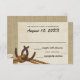 "Cravate le noeud" à la campagne avec cette carte de réponse mariage pas si traditionnelle. Deux fer à cheval attachés dans le noeud de la corde au-dessus du burlap. Invitation entièrement imprimée. Burlap et les décorations sont imprimés et non attachés.