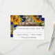 Carte de réponse de lumières en bois rustique aux tournesols et roses de marine avec tournesols jaunes, roses rouges et gypsophile. Un fond en bois rustique avec des lumières féeriques scintillantes au-dessus et un design de cœur en cursive. Idéal pour ce mariage champêtre ou de grange en automne. Produits assortis disponibles.