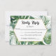 Cette charmante carte de réponse de mariage aquarelle à la végétation tropicale présente une végétation tropicale peinte à la main. Les feuilles de Monstera et de palmier dans une aquarelle vert émeraude vibrant donnent le ton parfait pour votre mariage sur le thème tropical.