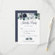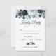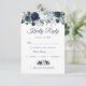 Cartes de réponse de mariage bohème avec un fond blanc chic et élégant pouvant être changé en n'importe quelle couleur, un arrangement floral aquarelle bleu rustique, et un modèle de réponse de mariage moderne avec option de menu.