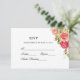 Carte de réponse de mariage floral aquarelle rose et pêche (RSVP). Un design de cottage élégant dans des nuances de rose, pêche et corail avec du feuillage vert. Personnalisez ceci avec vos informations. Choisissez un papier et une finition. Si vous aimez ce que vous voyez, mais que vous ne voyez pas ce dont vous avez besoin, veuillez me contacter.
