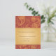 Des motifs paisley dorés surimpriment un fond de couleur rouille foncé. Le texte de mariage personnalisé est placé sur un panneau à dégradé doré. Idéal pour un mariage sur le thème de l'Asie du Sud-Est ou lorsque vous souhaitez faire une déclaration chaleureuse et audacieuse. Disponible en couleurs alternatives avec des produits assortis.