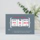 Pour tous ces couples qui aiment le casino ! Voici une réponse de mariage machine à sous amusante. Ajoutez-y la date de votre mariage ! Les couleurs sont Gris Acier Sombre et Rouge. Ajoutez la date de votre mariage en rouge et amusez-vous avec la deuxième date - utilisez peut-être la date de vos fiançailles ou même votre premier rendez-vous ! Si vous souhaitez une palette de couleurs différente, veuillez envoyer un e-mail à paula@labellarue.com avant de personnaliser ou de passer commande afin qu'un nouveau modèle puisse être créé pour vous.