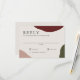 Une carte-réponse de mariage au style artistique qui transmet une élégance simple, ce design présente une riche palette de couleurs automnales dans des formes abstraites de rouge vin bordeaux, de terre cuite et de vert chasseur le long des bords du design. Un fond écru se marie bien avec les couleurs de l'automne. La police de caractères est nette et élégante dans sa simplicité. Personnalisez avec la date de réponse requise pour votre RSVP.