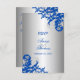 © 2018 Socialite Designs. De belles cartes de réponse de mariage avec des volutes et des fioritures d'angle dans des tons bleu royal et gris argenté.