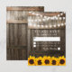 CARTES DE RÉPONSE DE MARIAGE AU VIGNOBLE DE TOURNESOL | Fond de tonneau en chêne sombre de grange de campagne, guirlande lumineuse, tournesols jaunes dorés, votre monogramme et un modèle de rsvp moderne. Trouvez d'autres cartes de réponse de mariage en bois sur http://www.zazzle.com/special_stationery