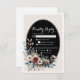 Réponse de mariage rustique floral classique élégant 4. Cette carte de réponse RSVP personnalisable pour votre mariage, conçue avec élégance, présente un centre ovale noir classique avec des arrangements floraux élégants dans des teintes de rose doux, de crème et de bleu poussiéreux.