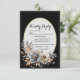 Réponse de mariage rustique floral classique élégant 5. Cette carte RSVP personnalisable pour votre mariage, conçue avec élégance, présente un design floral intemporel avec des tons ivoire doux, or et gris argenté. Sur un fond noir classique, elle encadre magnifiquement les détails de l'événement dans une combinaison de polices serif et script sophistiquée.
