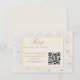 Rendez la réponse sans effort pour vos invités avec cette élégante carte de réponse QR, conçue pour correspondre à la suite de mariage à bordure dorée ivoire. Avec des fleurs blanches douces, des accents dorés raffinés et une mise en page minimaliste épurée, cette carte de réponse moderne permet aux invités de scanner votre code QR personnalisé pour une soumission rapide et facile de leur RSVP numérique.