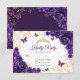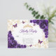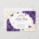 Carte de réponse RSVP Quinceanera or violet. Caractéristiques, police de caractères script, papillons dorés, roses aquarelles et diadème. Parfait pour une célébration glamour de princesse élégante. Personnalisez avec vos propres détails.