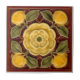 A charming tile in burgundy, gold, and green featuring a Tudor Rose in a symmetrical design molded tile with majolica glazes. Although the original is in high relief, this reproduction is smooth and flat and only looks dimensional. Makes a stunning border or accent tile for a backsplash or wall. Can also be used for coasters, trivets, or as part of other items available on Zazzle. Available in 4.5 inch and 6 inch square ceramic tiles.