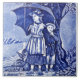 From a circa 1885 series of tiles representing the months of the year by Josiah Wedgwood & Sons. This is the April tile in blue and white and shows a boy and girl under a large umbrella during an April "shower". A great memento for April birthdays and other occasions.