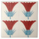 Reproduction from a tile made in Germany around 1900-1905. Jugendstil style is a type of art nouveau that foreshadowed the art deco movement. Rich, colorful and vibrant for a bold design of a red and blue flower on a cream background.