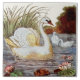 Repro hand-coloured Victorian Swan Transferware Tile