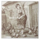 William Wise designed several series of tiles for Minton China Works that look like etchings with incredible detail. This tile depicts a young woman feeding chickens and is from circa 1880,. These tiles were available in one or more of several colors including black, sepia, and blue. We have some of each so check our store for more.