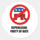 Republican - Party of Hate Classic Round Sticker