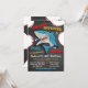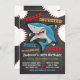 Billard d'anniversaire de requin infesté ! Prenez une grande bouchée de votre anniversaire d'enfant avec ces invitations super mignonnes à la fête d'anniversaire de requin. Un requin féroce avec des éclaboussures d'eau et de grandes piqûres et un arrière - plan calcaire.