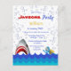 Un requin et sous l'eau de mer thème 2ème anniversaire invitation fête. Arrière - plan blanc, bulles, vagues bleues, plongeur sous-marine et requin. Modèles pour le nom de l'enfant, âge 2 deux, et détails de la fête, lettres bleues, rouges et jaunes.