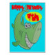 Gros requin caricature vert avec salutation du septième anniversaire.