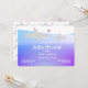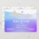 Cette invitation baby shower montre une maman et un petit requin. Il y a un coeur pourpre au-dessus des deux requins. Les deux flottent dans l'océan avec une teinte violette et bleue. Le texte est entièrement personnalisable. Le dos de l'invitation a un motif de requins.