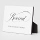 This elegant plaque says "reserved" in elegant, swirly black calligraphy and has a spot to add a name. The perfect reserved sign for your elegant, understated wedding.