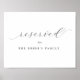 A minimalist wedding sign with "reserved" in black calligraphy script font and "the bride's family" in serif font. Available as a digital download.