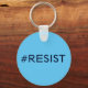 #Resist, black text on sky blue keychain