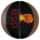 Social justice themed design features large fist of fire and flames with customizable "RESIST" text in red modern font on black background.