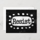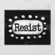 Le texte en gras "Résister" est centré sur un arrière - plan noir. Le texte noir est posé sur un rectangle blanc avec de grands points blancs texturés autour, offrant un contraste ludique sur le fond de couleur solide.