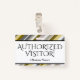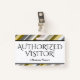 This glamourous badge design features the message "AUTHORIZED VISITOR!", and a customizable company name or other custom message. A badge like this could be used to indicate that a visitor or guest at a workplace is allowed to be there. [~Z0000307]