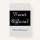 This elegant badge design features the message "Event Official". A badge like this could perhaps be used to identify that the wearer is working for or at an event. [~Z0000307]
