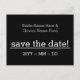 This respectable and elegant save-the-date postcard design features the message "save the date!" on the front, along with customized names, a date, and event details. Postcards like this could be used to let potential guests know about an upcoming wedding celebration or some other event.