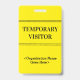 This elegant badge design features the message "TEMPORARY VISITOR", and a customizable company name or other custom message. A badge like this could be used to indicate that a visitor or guest at a workplace is allowed to be there. [~Z0000307]